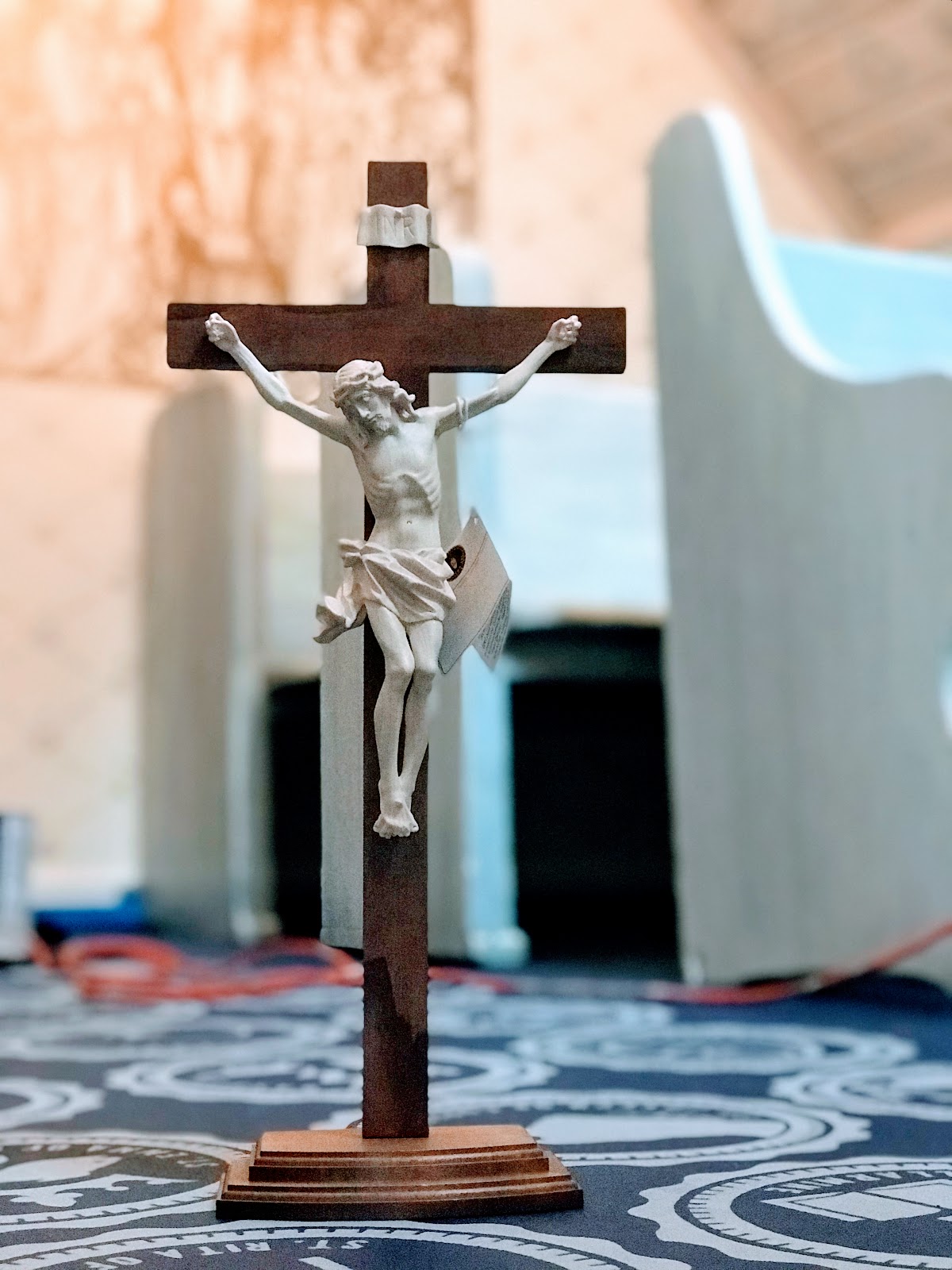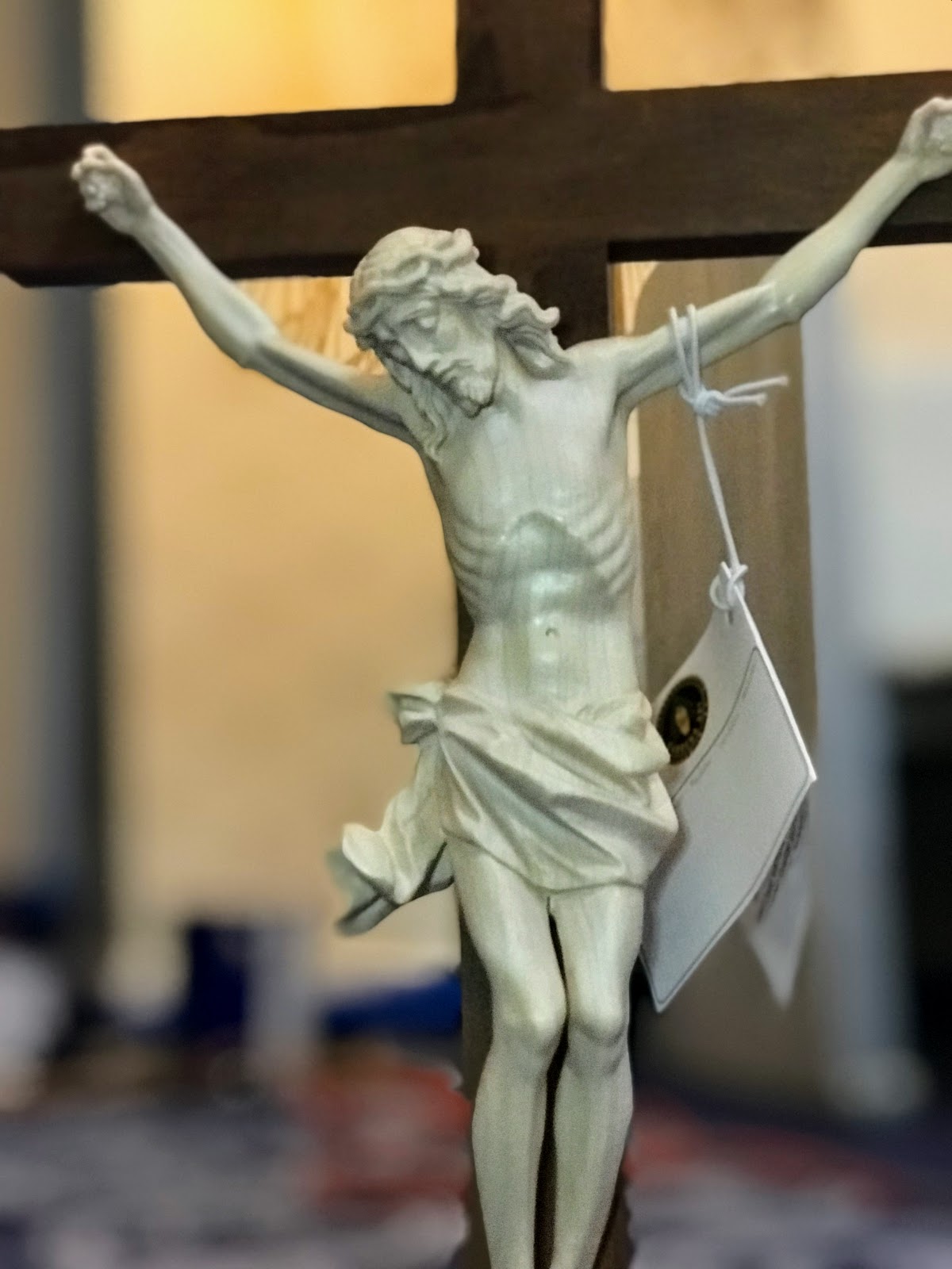 This stunning standing crucifix was a gift to our family from the very kind people at Holyart.com. You can find it here. Both the cross and the corpus are hand carved wood. The detail is breathtaking.